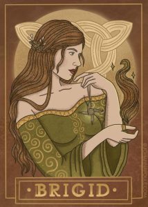 En los mitos celtas el tejido es un terreno cargado de poder. Allí se alza la figura de Brígida, diosa de las artes femeninas: el hilado, el tejido y el teñido, junto con la poesía, la sanación y el fuego. Su presencia nos muestra cómo las labores cotidianas podían ser también sagradas, parte de un entramado que unía vida, magia y comunidad. Así las prendas tejidas por la diosa tenían poderes curativos y ofrecían inmunidad a quienes las vistieran. En torno a su figura la rueca y el nido eran símbolos de renacimiento y nuevos comienzos, asociados a las celebraciones del Imbolc.